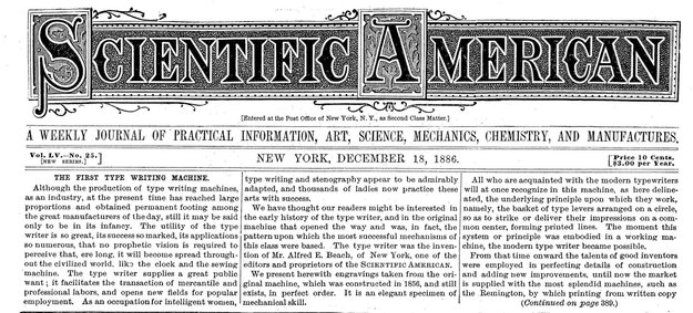letter to Scientific American, the first had the appearance